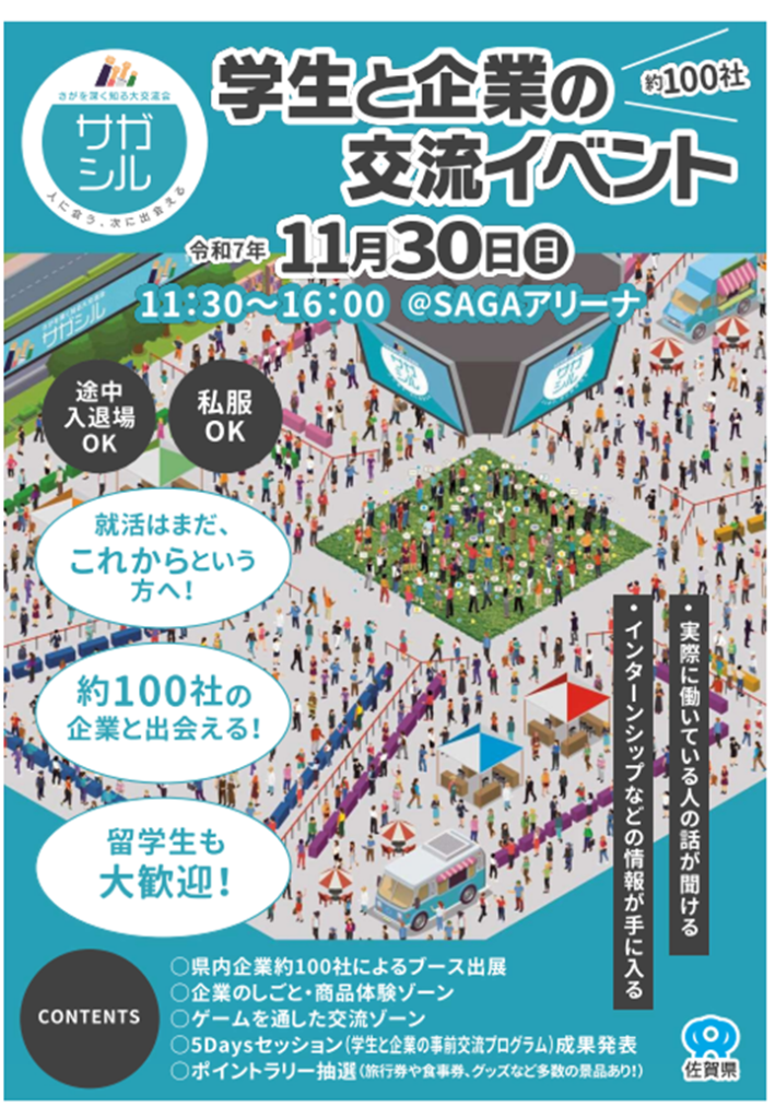 | 備考 | ※佐賀県内の企業と学生の交流イベント ※私服参加OK |