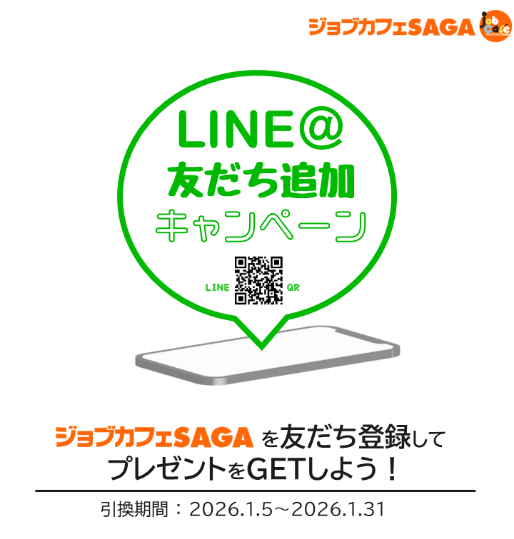 ジョブカフェSAGA公式LINE 友だち追加キャンペーン【先着100名様】(1/5~引換え開始)